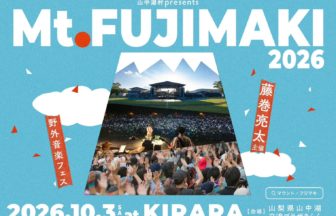 藤巻亮太がオーガナイザーを務め、自身の地元である山梨県の山中湖交流プラザ きららで、2022年10月1日(土)、2日(日)に開催する野外音楽フェス「Mt.FUJIMAKI 2022」の全出演者を発表した。