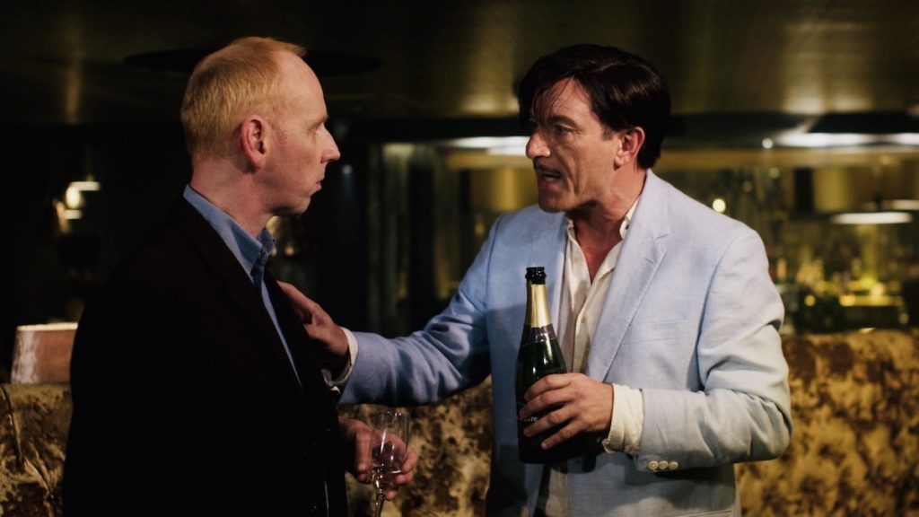 併せて解禁された場面写真では、クリエイション・レコーズのメンバーたちとのショットや、破天荒なアランの人生を表すかのように、酒をラッパ飲みする姿や頭を抱え曇った顔のアラン、するどい眼差しを向ける写真など、さまざまなドラマを引き起こす彼のいろんな表情が切り取られる。