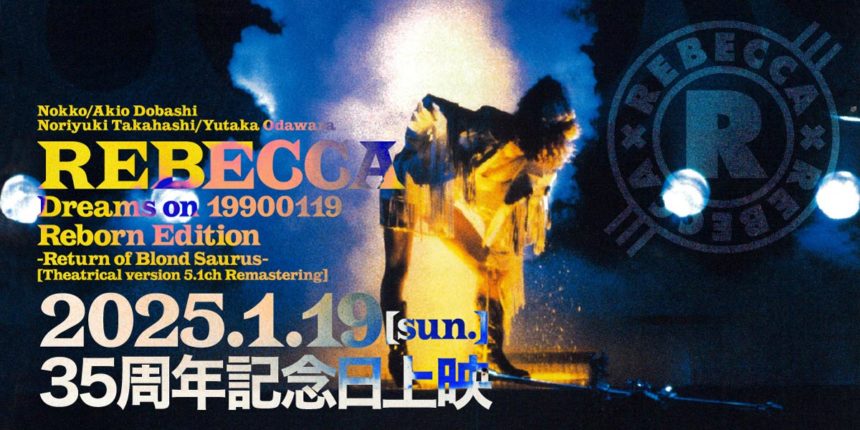 翌1991年2月14日に正式に解散が発表され、事実上1990年の日本武道館公演が、REBECCA最期のライヴとなりました。この歴史的瞬間を完全収録したライヴ・フィルム『 Dreams on 19900119 Reborn Edition-Return of Blond Saurus-』を日本武道館公演からちょうど35年を迎える2025年1月19日(日)に、全国8都市10カ所の映画館にて一夜限りの記念日上映いたします。