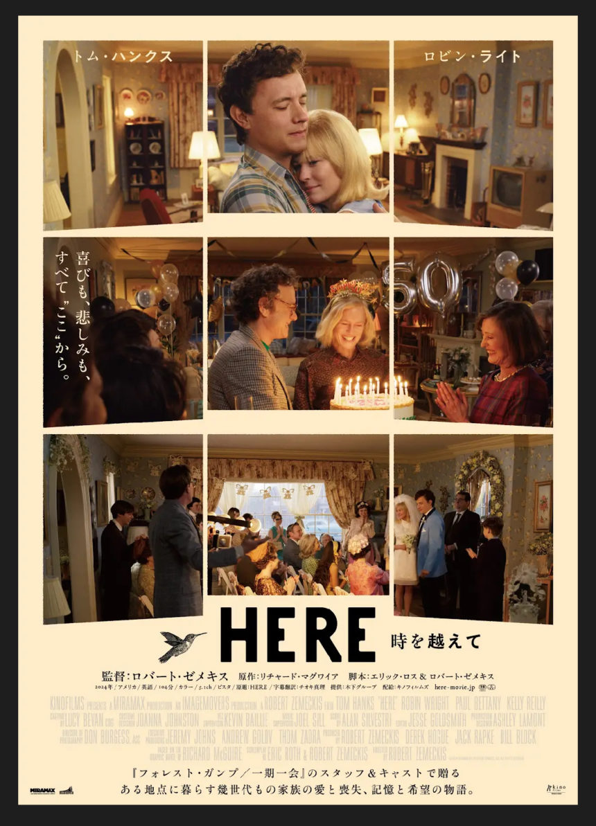 アカデミー賞を席巻した『フォレスト・ガンプ/一期一会』のスタッフ&キャストが再集結して贈る映画『Here』(原題)の邦題が『HERE 時を越えて』に決定、2025年4月4日(金)よりTOHOシネマズ 日比谷ほか全国で公開となります。さらにポスタービジュアル&予告映像も解禁となります。