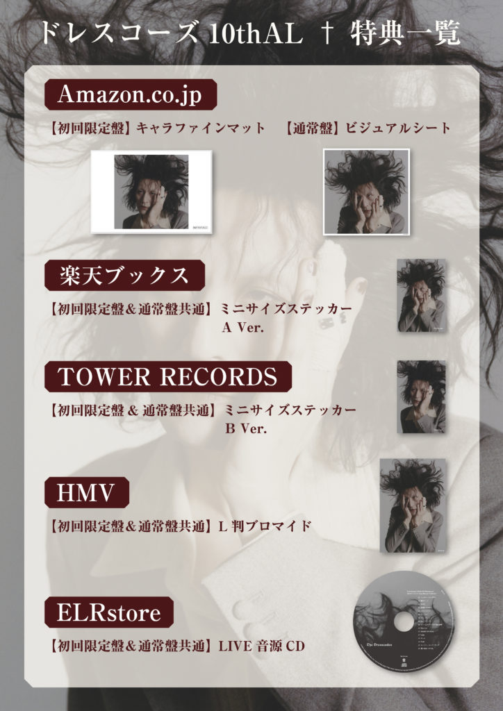 ドレスコーズの通算10枚目となる『†』は、昨年自叙伝『ぼくだけはブルー』を上梓した志磨が執筆する中でよみがえった感情をぶつけた“ロックンロール”な作品で、初回限定盤・通常盤に加え、数量限定特装盤(ELRstore限定)の3形態で発売される。