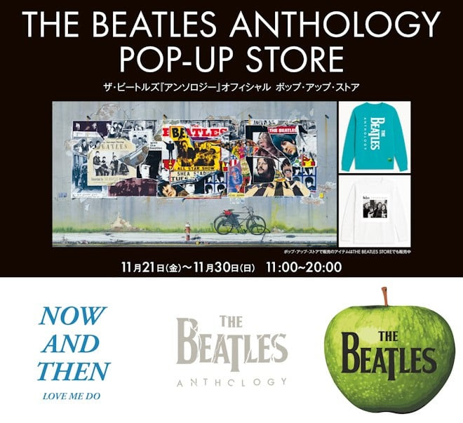 オフィシャル・ポップアップ・ストアでは『アンソロジー・コレクション』8CD&12LP、『アンソロジー4』2CD&3LPはもちろん、『ザ・ビートルズ・アンソロジー』のデザインを採用したフーディ、ロングスリーブTシャツ、トートバック、キャップ、マグカップ、キーチェーン等々が発売される。