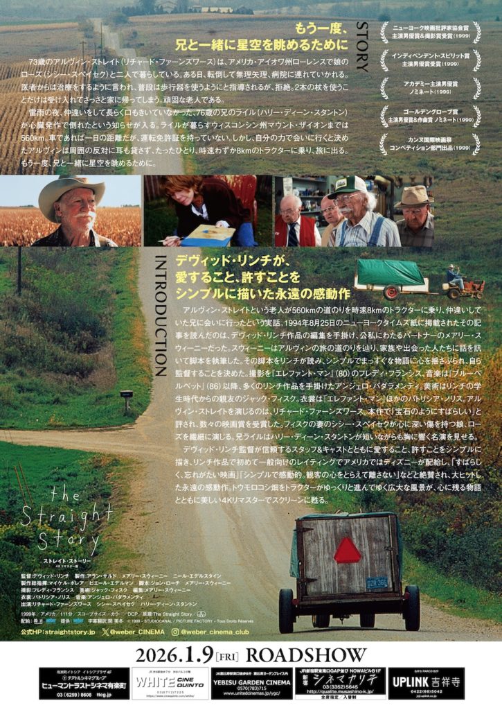1月9日(金)公開となる、デヴィッド・リンチ監督『ストレイト・ストーリー 4Kリマスター版』の入場者プレゼントが決定し、あわせて4K本編映像を初解禁した。