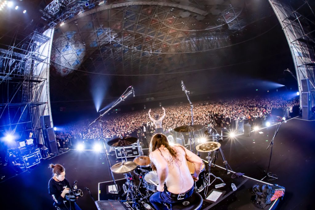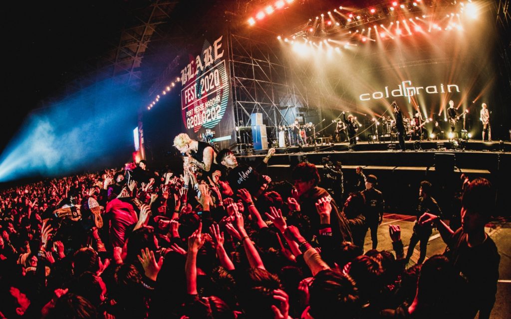 18時38分にSEが流れると、1日目のトリを飾るcoldrainが遂に登場。午前11時からライヴ猛者たちのバドンを受け、どんなライヴを披露してくれるのか。「全員かかって来い!」とMasato(Vo)は告げ、「REVOLUTION」から鮮やかなスタート・ダッシュを決める。続く「ENVY」で2万人の観客がジャンプしているではないか。その光景を目の当たりにして、名古屋が本当に世界の中心ではないかと肌で感じた。「気づいたらかっこいいバンドしかいない。日本の音楽がどれだけ凄いのか、日本が一番ロックの最先端、それで組んだフェス!」とMasatoは熱く語り、さらに「毎年やって何が楽しいんだよってスタンスです。2010年に『BLARE DOWN BARRIES』というイベントを始めて、700人売り切れなかった。10年間で俺らの周りのバンドは何十倍もでかくなった」と付け加え、ラウドロックを掲げてきたおかげで様々なバンドやあなた(リスナー)と繫がれたと力説。その後に聴いたバラード「JANUARY 1ST」におけるMasatoの繊細な歌声はあまりにも美しかった。後半、「MAYDAY」でCrystal LakeのRyo(Vo)、続く「24-7」ではSiMのMAH(Vo)を招いて最高潮の盛り上がりを記録。そのままアンコールに応えると、「The Revelation」においてはCrossfaithのKoie(Vo)とHEY-SMITHのホーン隊3人が加わるスペシャル・バージョンで披露。爆音の中で鳴り響くホーンの音色は爽快で、フロアのあちこちでヘドバンやダンスが繰り広げられていた。もう1日目からとんでもない熱狂図を作り上げて1日目は終了した。