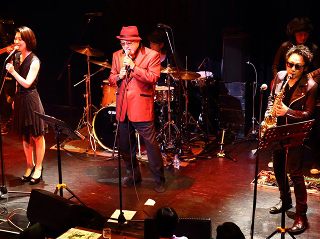 再びライトが照らされたステージからは「Shot In The Dark」が奏でられ、チャーリー・コーセイと武田カオリ(ゲスト・ボーカル)がステージに登場し、「Afro Lupin ’68」をアウトする。チャーリー・コーセイと武田 カオリの歌声が、「ルパン THE 3rd」の始まりを告げ、伊藤 隆郎(Dr)のフロアドラムに合わせて、手拍子が客席から沸き起こった「Year Lupin」では、歓喜と静寂が同居した物語を奏でる。転調と共に、飯川のトランペットが多彩な表現で魅了していく。 チャーリー・コーセイのMCから「闇を走る」が続き、フロアを動き回りながらソロをとる寺谷 光(trombone)は、その力強い音色を響かせた。