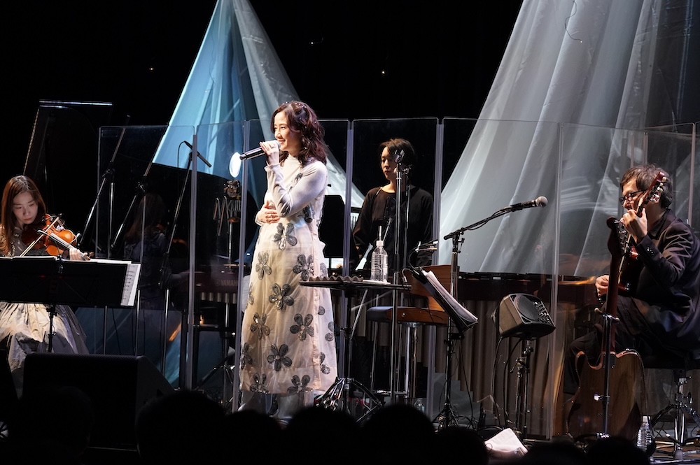 休憩をはさんだ第2部では、大きな花柄のスパンコールがきらめく白いワンピースで登場し、2002年のアルバム『My Pieces』収録の「LOVE-HOLIC」からスタート。第1部しかり、近年のステージでは歌われてこなかったナンバーが選曲されており、それらが新作収録曲と見事に調和しているのが印象的で、往年のファンには懐かしく、近年からのファンには新鮮な印象を与えるセットリストだった。