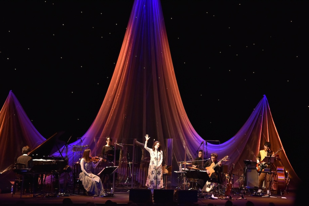 続けて、“タイトルからして、自分がこれまで通ってきた道を感じる”と話して高野寛作詞の「winter pupa」を、そして“「ヴァイオレット」に続いて素敵な曲を書き下ろしてくださいました”と話して川谷絵音サウンドプロデュースによる「カトレア」を披露。このところ原田は、伊藤ゴローとの鉄壁のタッグを主軸にしつつ、自分より下の世代のアーティストとのコラボレーションも果たしている。今回のsorayaや川谷絵音との作業にも“刺激を受けた”とMCで語ったが、それが近年の音楽活動の充実ぶりを示す一因でもあるのだろう。