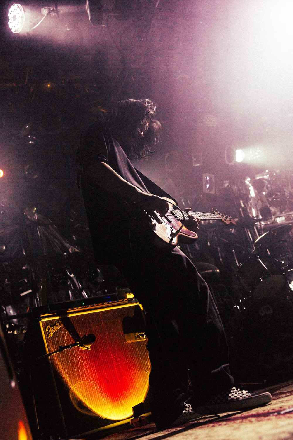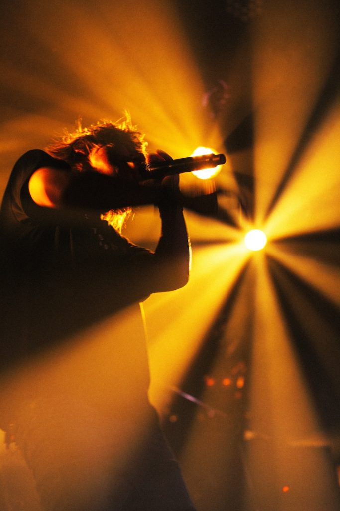 ロッカバラード「存在のカケラ」の、遠い記憶を思い出しそうになる懐かしいピアノイントロが鳴ると、青い光を放つ球体が降りてきて、白色に変わったそれにINORANが触れた。仄暗いステージで、球体を顔に近付けたり握って胸元に寄せたり、時計の振り子のように大きく揺らしたりしながら歌唱。まるでアートパフォーマンスのような、ユニークな光の演出に目が釘付けになる。ここで一旦INORANがステージを去ると、バンドメンバーだけでインストゥルメンタル「Anything」をセッション。再録の時点で既にリアレンジされていたのだが、それすら土台として、3人は自由に、思い思いの方向へと走り出すようなパワーと狂気溢れる演奏を繰り広げた。拍手しながら再登場したINORANは、「カッコよ!」とメンバーを絶賛。ツアーでこの曲が進化を遂げたことを「すごくうれしい」と笑顔を見せた。