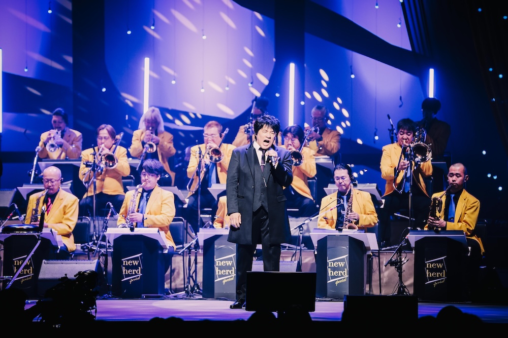 沢田研二のソロデビュー曲「君をのせて」(1971年)はASKAのソロアルバム『NEVER END』でもカバーしていた楽曲だ。ここでは原曲に忠実なアレンジでの歌唱となった。包容力のある歌声が染みてきた。歌詞の<夜の海を渡る船>のように、歌によって聴き手をどこかへと運んでいくようだ。「木綿のハンカチーフ」は、多彩な楽器編成を活かしたアレンジになっていて、1コーラスごとに変化していく起伏に富んだサウンドが時の移ろいを表しているようだった。ASKAの歌声が、時の流れの中で心替わりする主人公の悲哀に寄り添うように響いてきた。